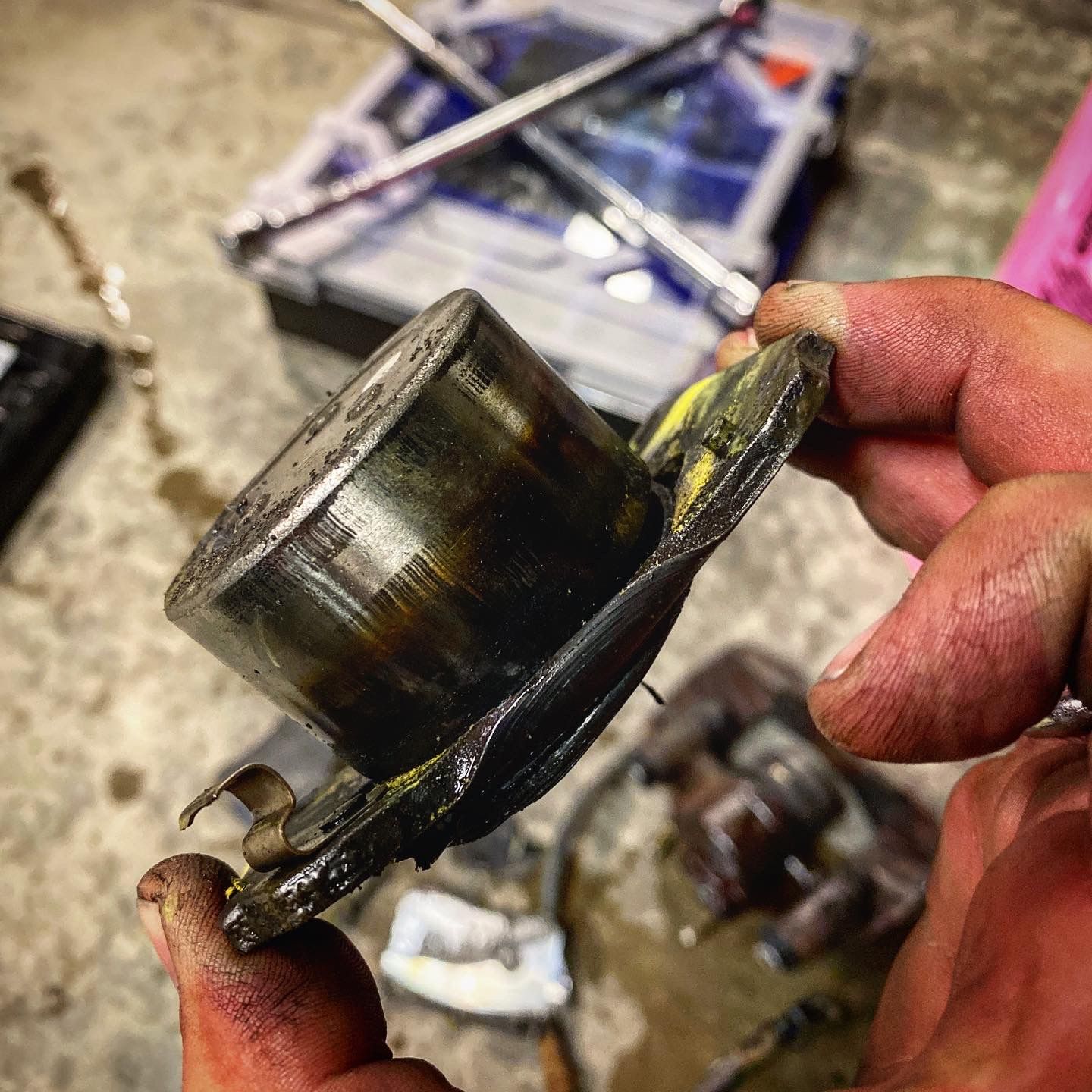 - Inspect oil pan.
