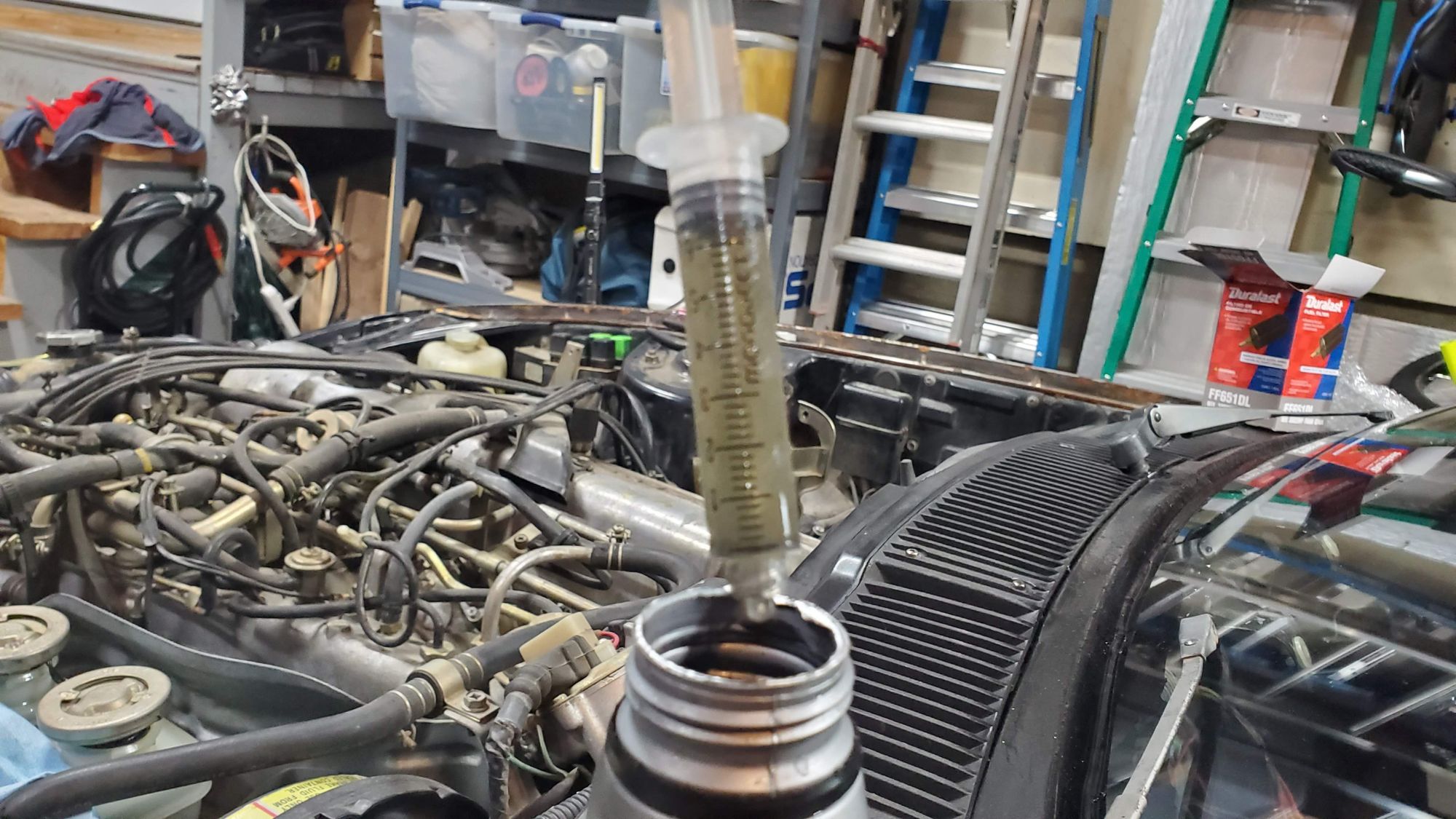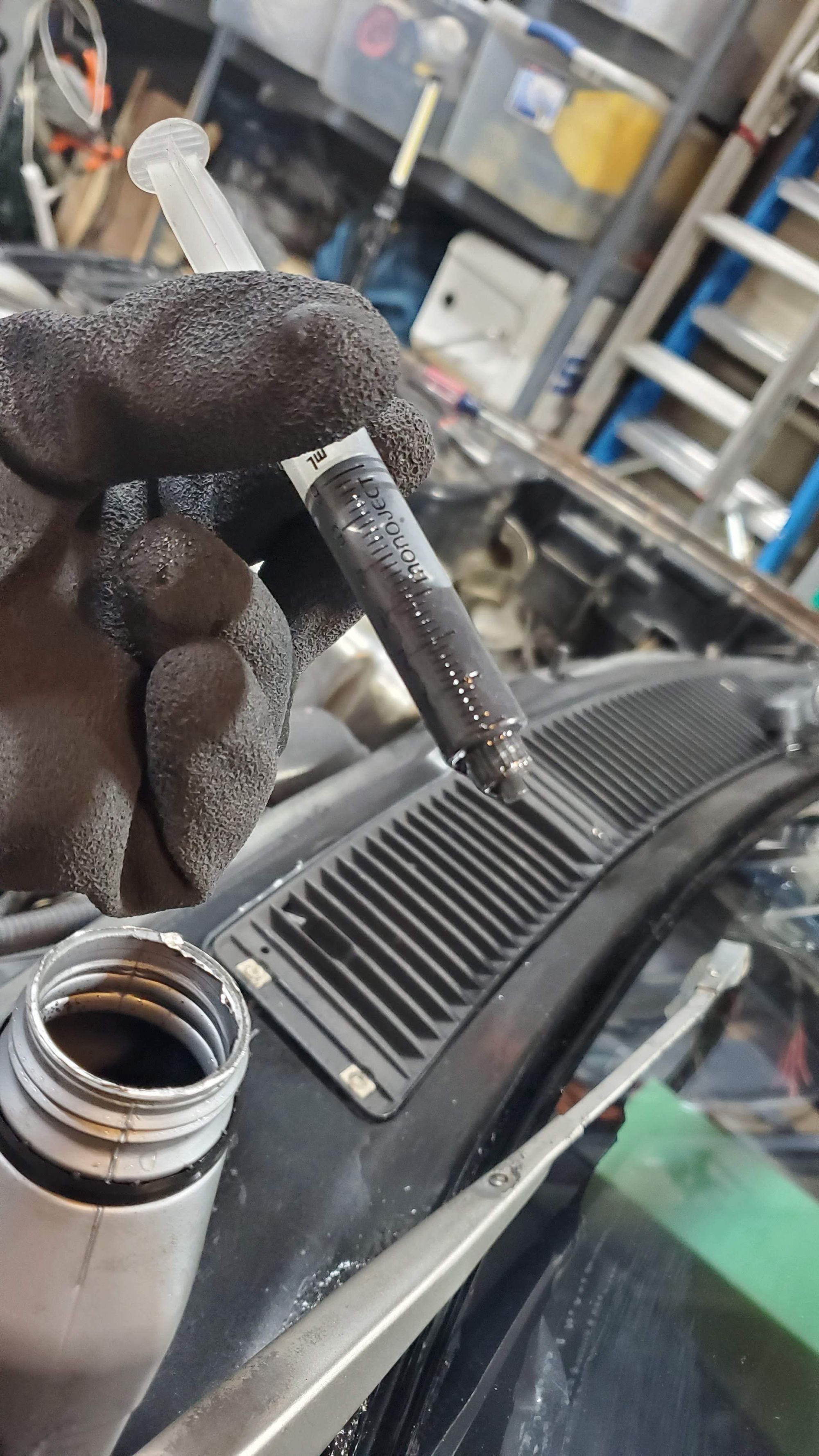 That's bad. What's worse is halfway through pumping that gunk out, we realized the soft line was cracked, and needed replaced. This work spanned two nights as we waited on parts, but last night completed the line replacement, and the full fluid flush.