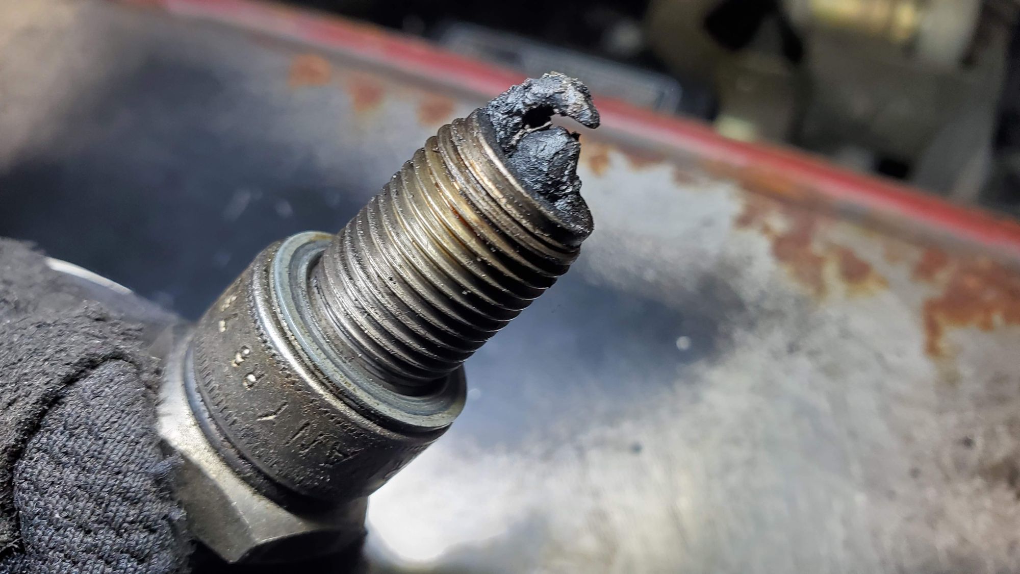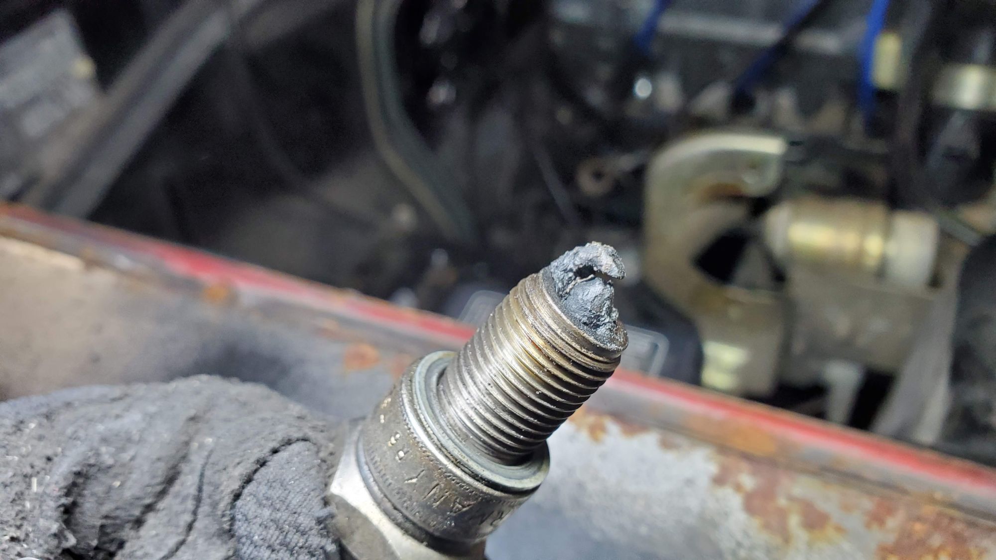 This was happily about as straightforward as you might ask, and included replacing the distributor cap for good measure. Checking out the old plugs paints a lightly concerning story about cylinder #5.