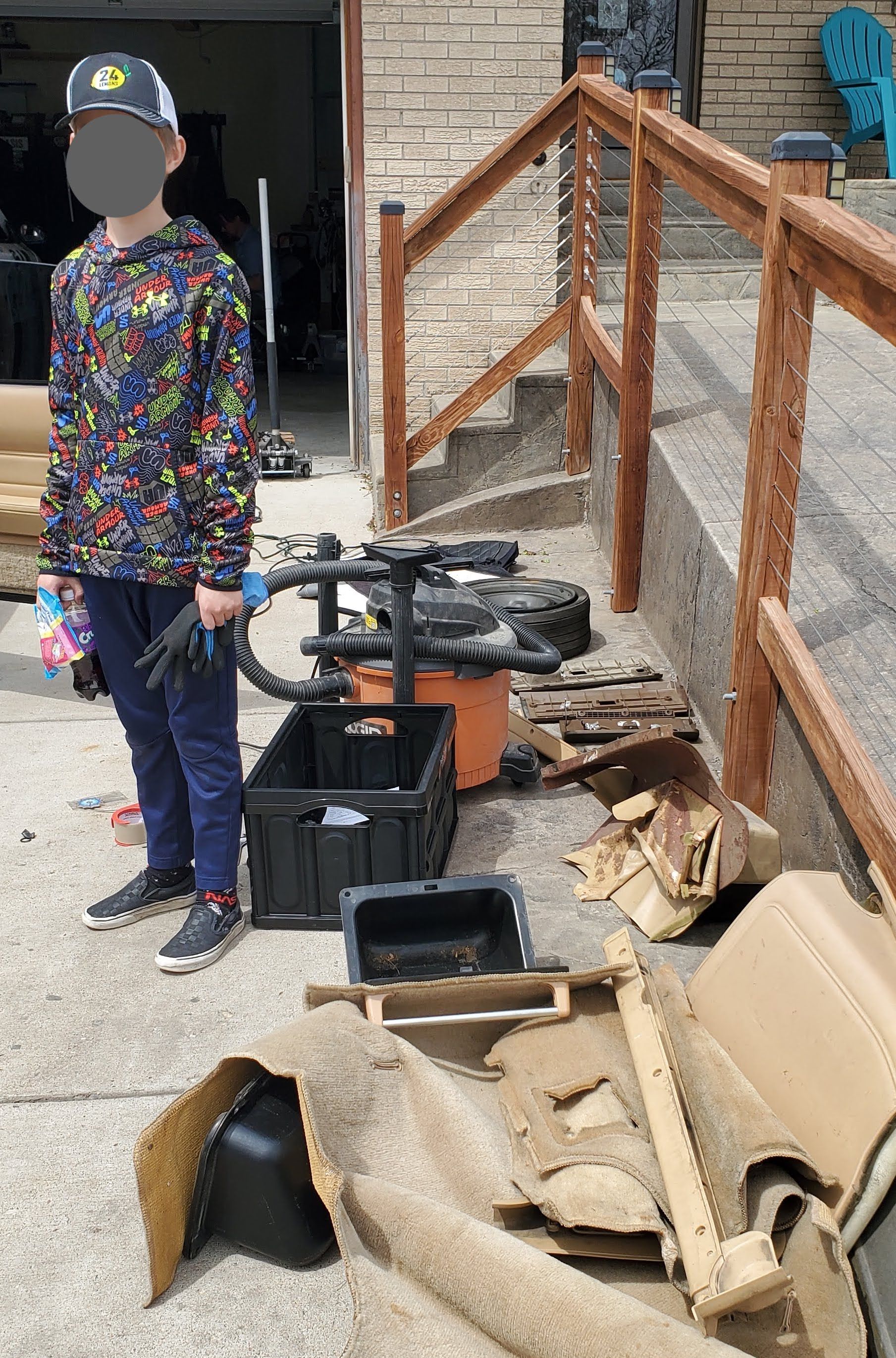 While this felt good for moral car nerd reasons, it meant we could not remove the interior with the traditional hack-and-slash approach to Lemons engineering. We methodically removed trim pieces, seats, carpet, more carpet, other trim pieces, small thingamajigs that hold other thingamajigs onto the car.