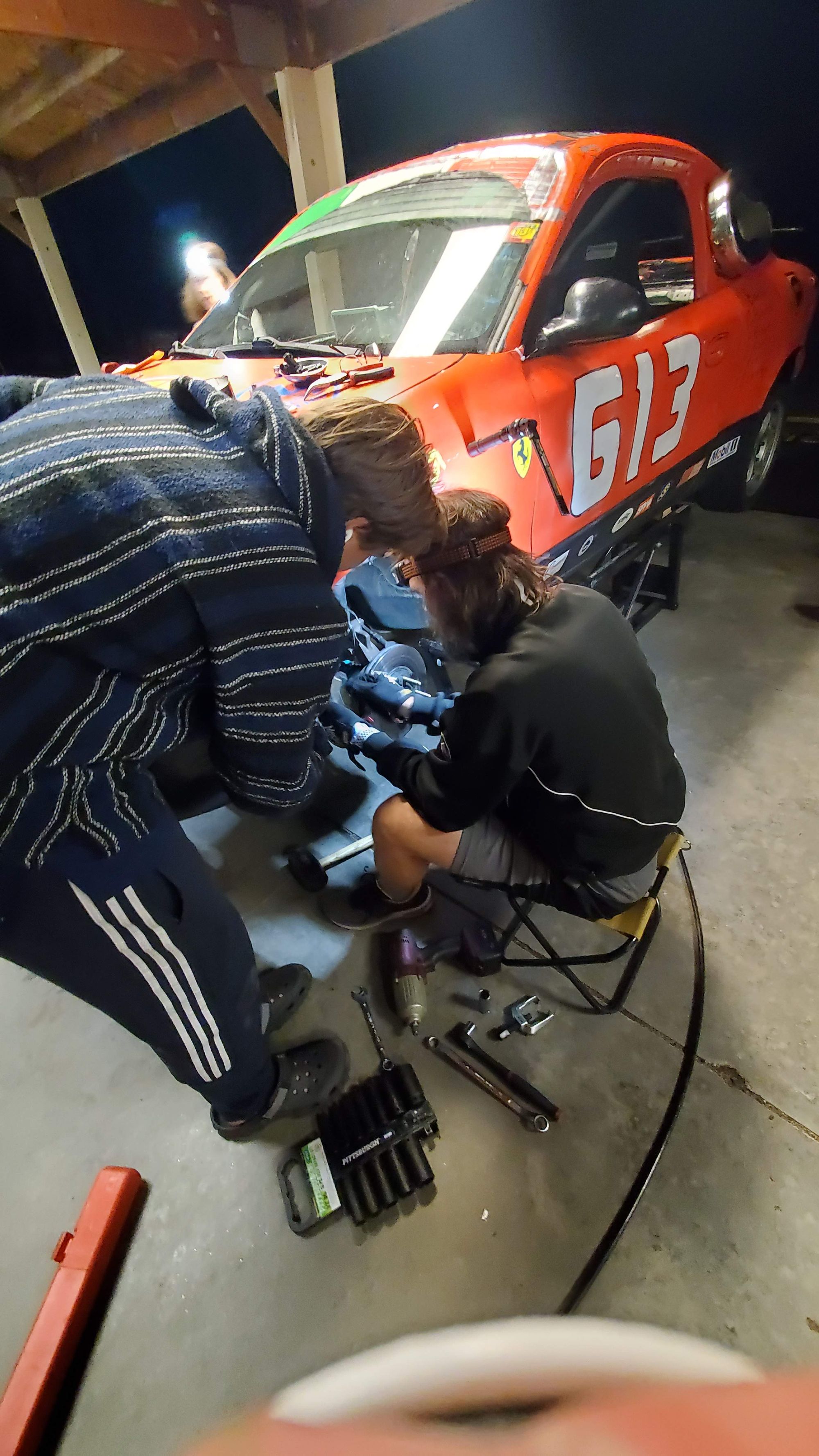 While all this was going on, Tyler started investigating a clunk in the front right of the zx2. Not terrible, not super loud, but a new clunk all the same. You have to pay attention to details, and follow up on them. A new clunk is not a positive the night before a 14 hour race. Thankfully, Tyler discovered several bits of suspension on the front passenger wheel were loose. This probably shouldn't be surprising, we had this car in a whole lotta pieces during the offseason. Easy solution, saved the race.