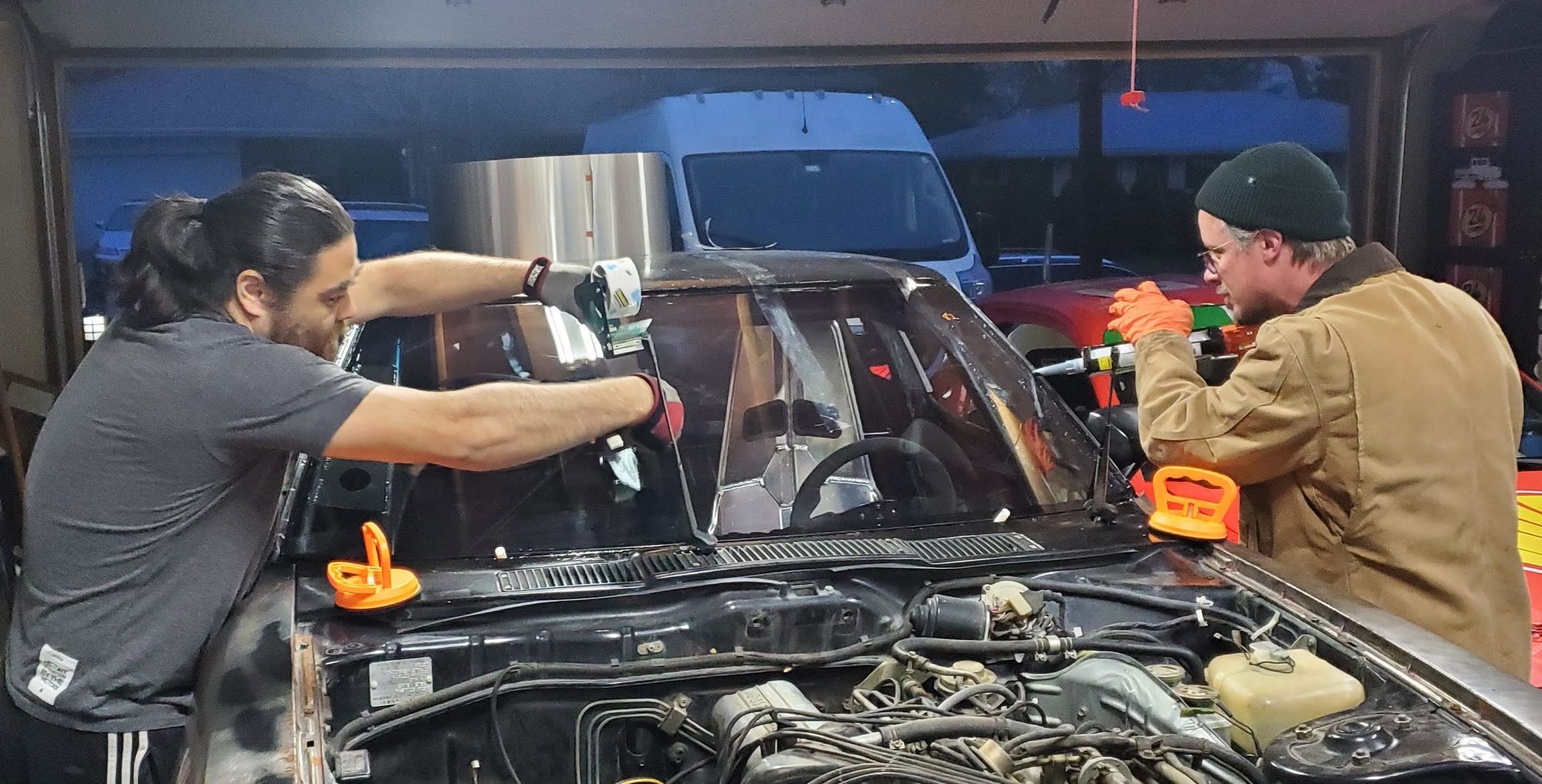 First thing we learned about windshields: nobody will install them for you, unless they are selling you the windshield. The risk of breaking the glass is just too high. So for self-sourced, junkyard windshields the only available installer is yourself. I had developed some serious anxiety around this operation. Given what we went through to get this windshield, and what it would take to replace it... the potential for failure looms large in my head.